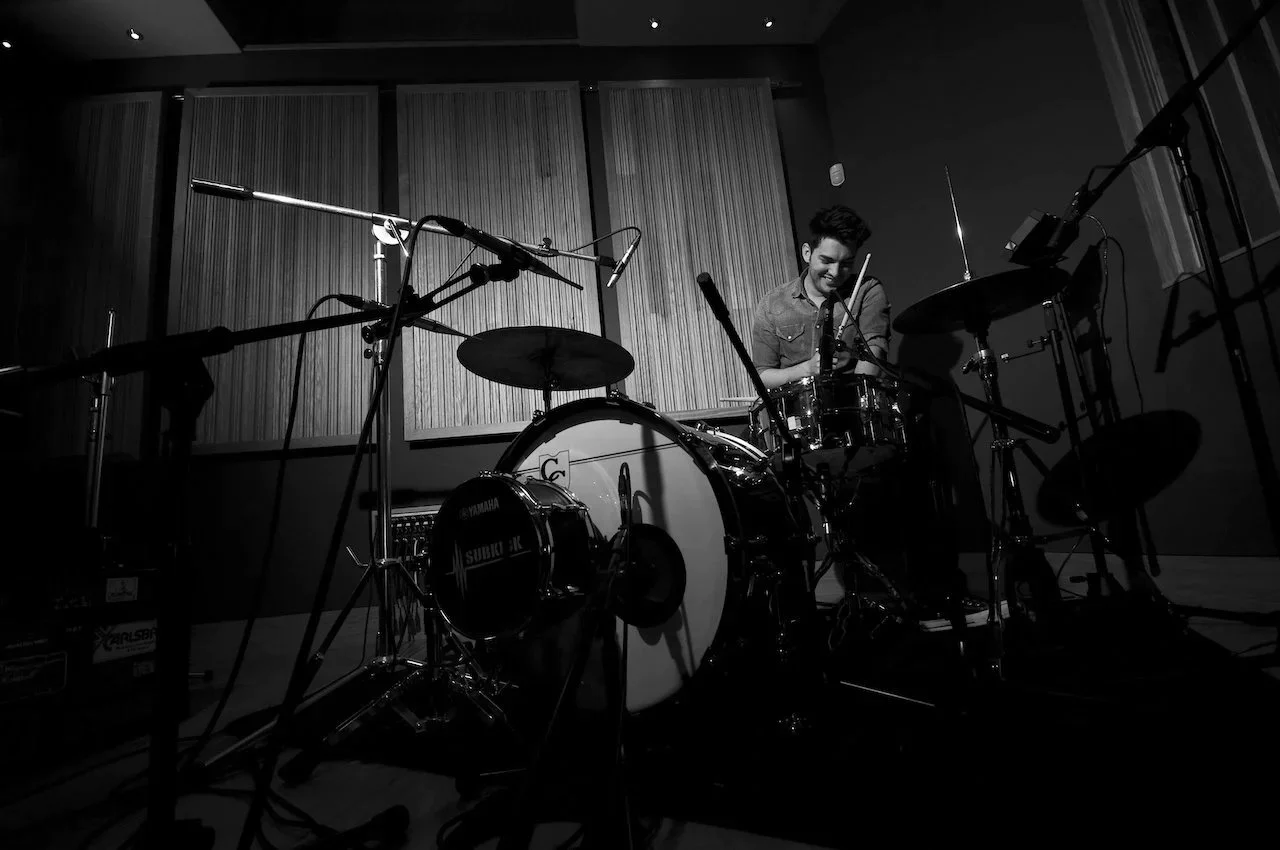Situated in Fareham, the studio is a cool, calm and inspiring environment to learn and play the drums.